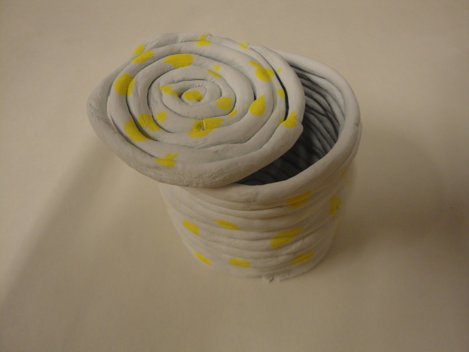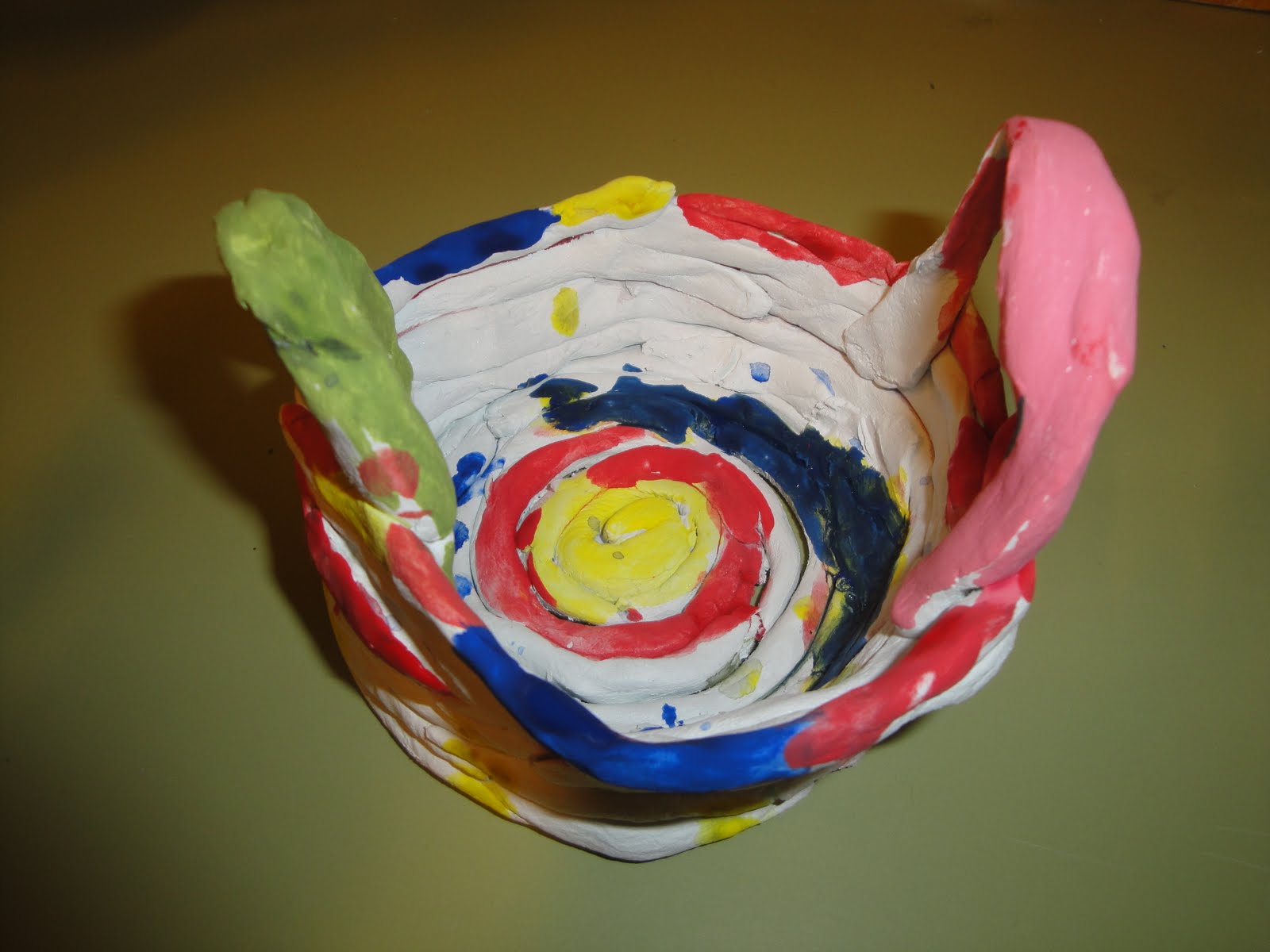 En los trabajos desarrollados por nuestros alumnos del colegio Rufino Blanco de Madrid, hemos seguido el método de la aduja (término marino que significa dar vueltas a una cuerda); nuestras vasijas están hechas como las piezas primitivas de alfarería. Están compuestas por tiras de arcilla sobrepuestas hasta obtener una forma, en general helicoidal. Este tipo de trabajos desarrolla la concepción de formas abstractas, el sentido táctil y habilidad en la manipulación de la arcilla. Hemos utilizado arcilla blanca por ensuciar menos y ser más manipulable por las manos infantiles.