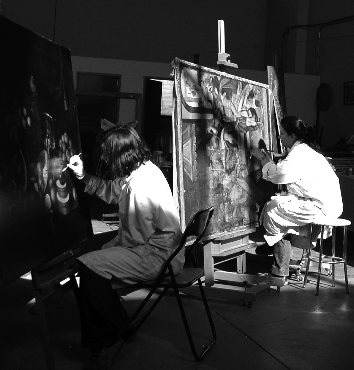 Después continuamos con manejo del color. Primero con ceras diluidas en aguarrás, y más tarde con técnicas húmedas de pincel, como son el óleo y acrílico.