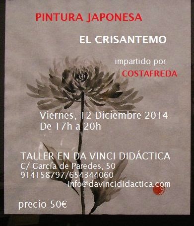 Para despedir la estación otoñal, Da Vinci Didáctica dedicará su primer taller al Crisantemo. Los materiales están incluidos en el precio. Será impartido por Ángeles Costafreda, autora de ésta entrada de blog, y pintora con gran experiencia en el arte sumí-e.